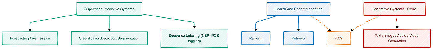 To illustrate this framework in action, we will explore three common categories of ML system design problems. Most interview questions can be mapped to one or a combination of these 3 archetypes: