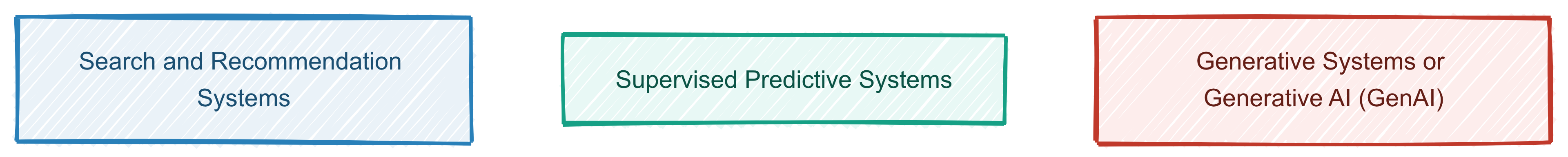 Text/image/audio generation fall under Generative Systems - GenAI